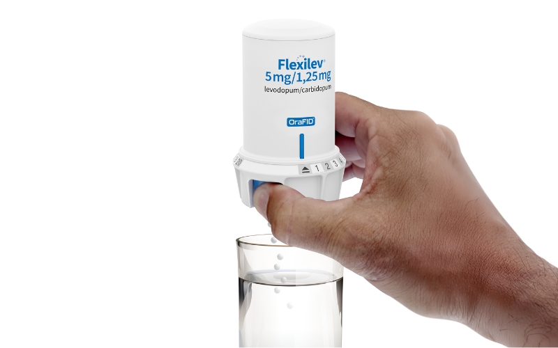 As Parkinson’s disease progresses, patients frequently experience variations in their motor abilities throughout the day. Treatment during this phase of the disease can be challenging and often require careful optimization of levodopa intake to maintain optimal symptom control and avoid occasional treatment failures such as dose gaps*. Flexilev in OraFID provides an innovative solution for fine-tuning levodopa treatment, helping to maintain consistent symptom control and improve patients quality of life.